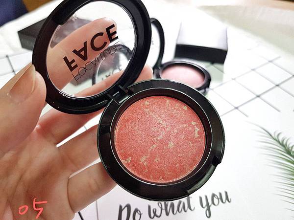 腮紅內大理石紋白色帶點珠光色,幫助提亮打亮膚色