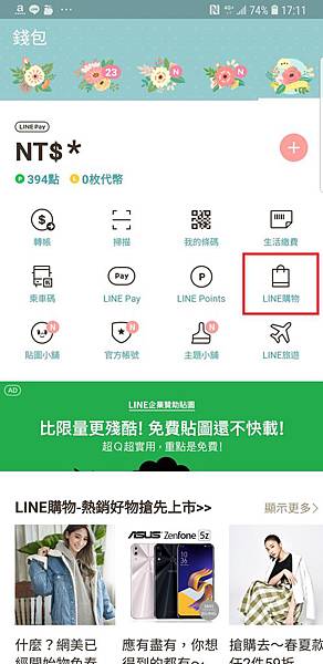 點選LINE購物