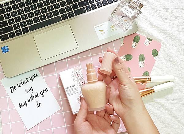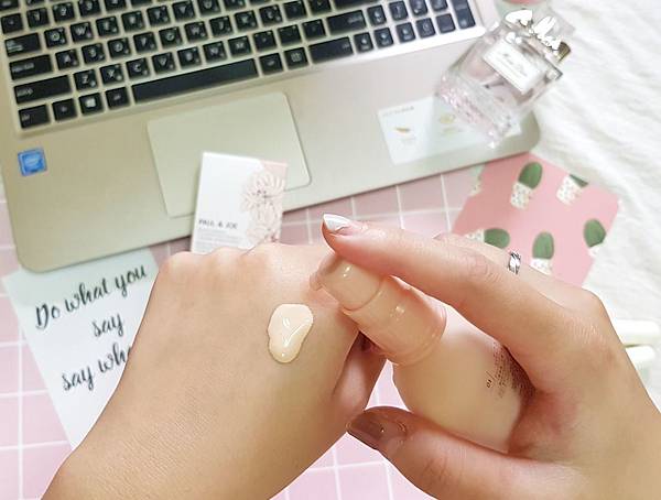 洗完臉後,先做完早晨的基礎保養後,就可以使用PAUL&JOE小香檳糖瓷絲潤隔離乳