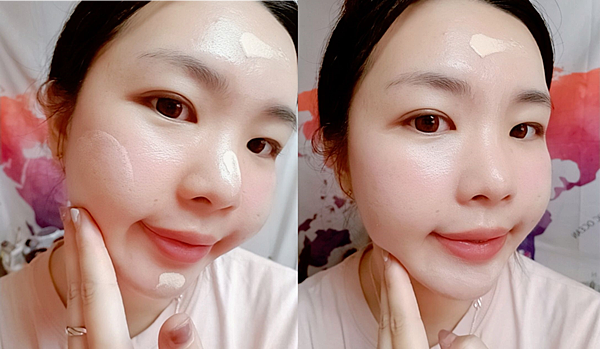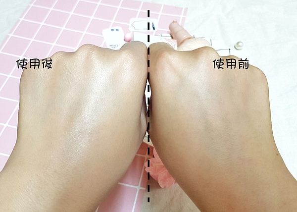 使用前後,我的手背差好多阿,左邊膚質立刻變的超級好,暗沉跟膚色不均勻都被修飾了