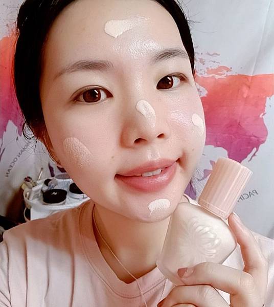 按壓一下的量就可以使用全臉,剛剛好都不浪費,輕點在臉部各處後,均勻塗抹