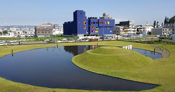 月牙湖邊是起起浮浮的人造山坡地