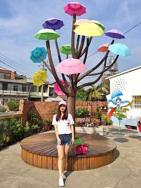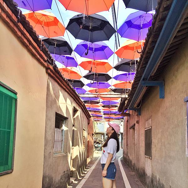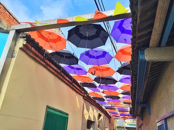 用雨傘打造的屋頂非常特別也成為打卡的大熱門景點