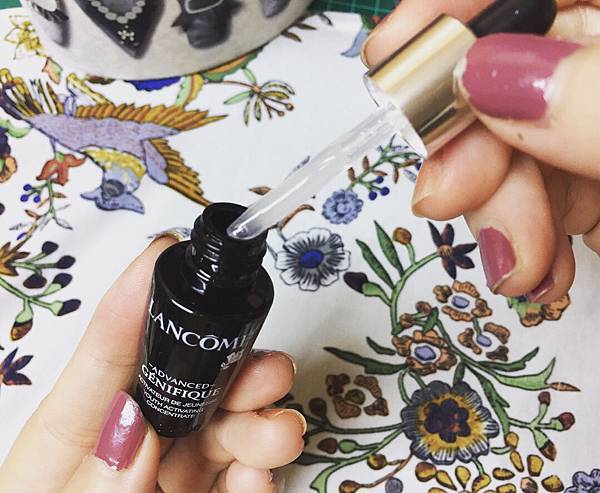 洗臉清潔後,於化妝水後取兩滴管定量肌因賦活露