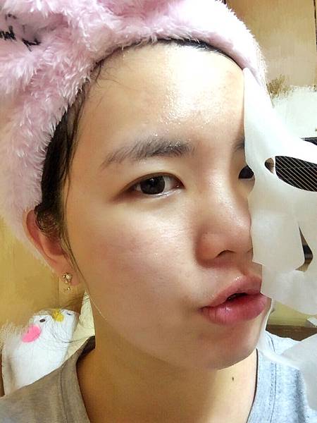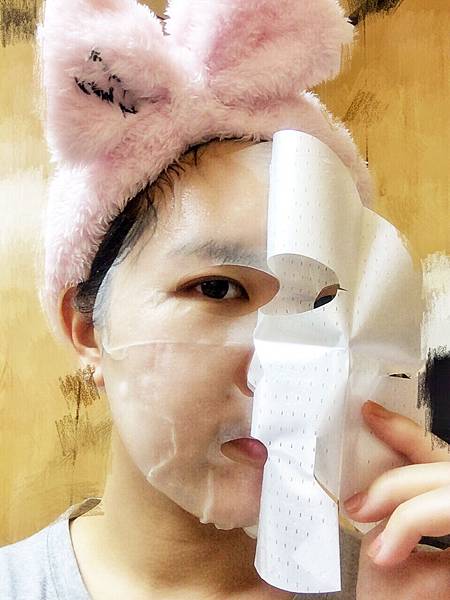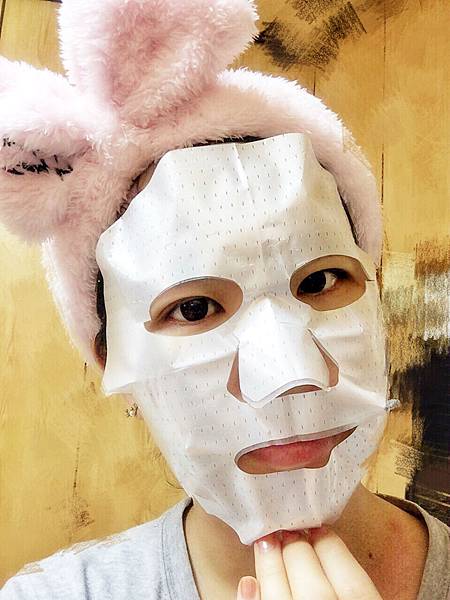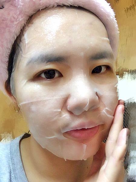 這款面膜紙較厚吸附滿滿的精華液緊密貼合臉部