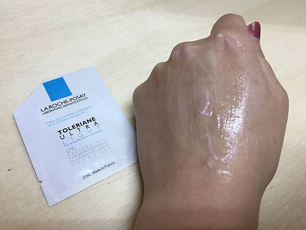 先試用在手背上,安心霜呈白色的乳霜狀,非常好推開,很快的就吸收進肌膚