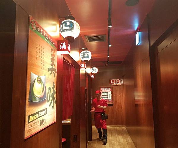 座位的正對面是拉簾,服務員會直接從正對面送餐到你的面前