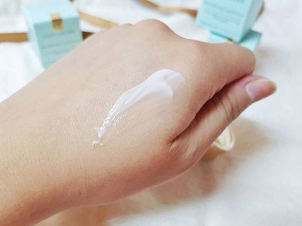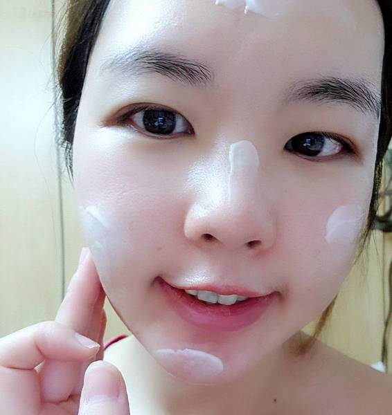 白色的乳霜輕爽質地,取適量塗抹於全臉部