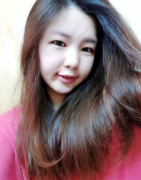 照片中是剛關掉吹風機還沒拿梳子梳整拍的