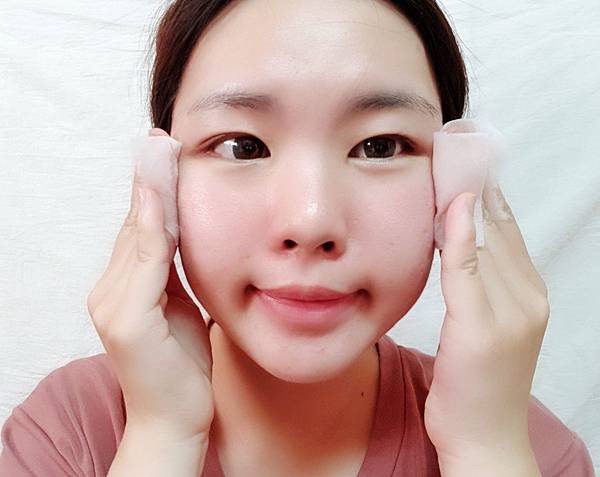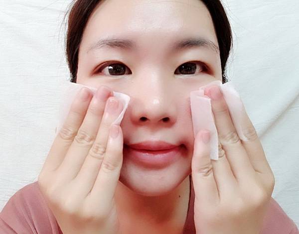在卸妝洗好臉之後取兩片化妝棉沾濕溫和潔膚水