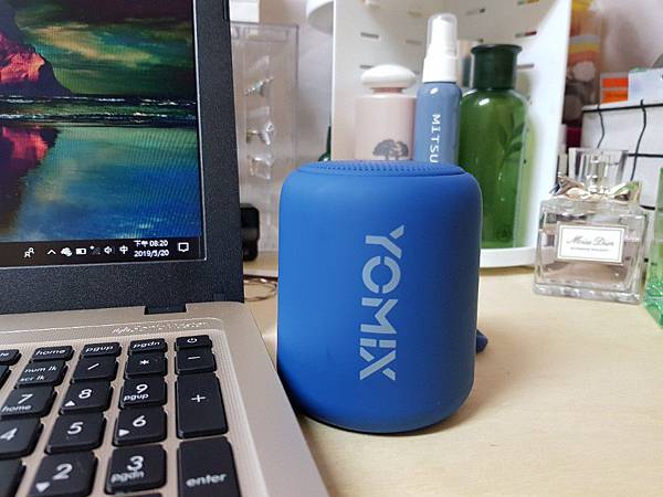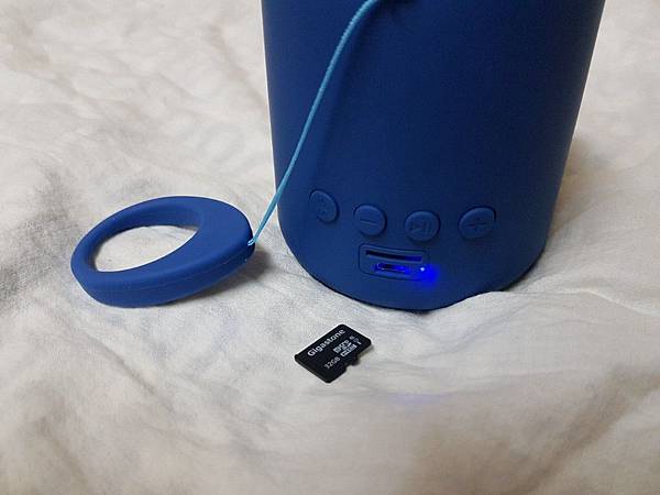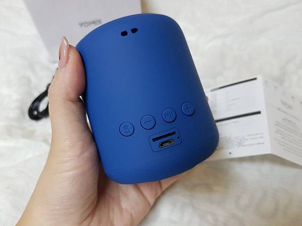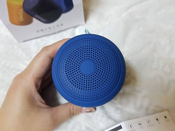 藍芽喇叭的本體,小小的圓筒狀,音響孔再頂端